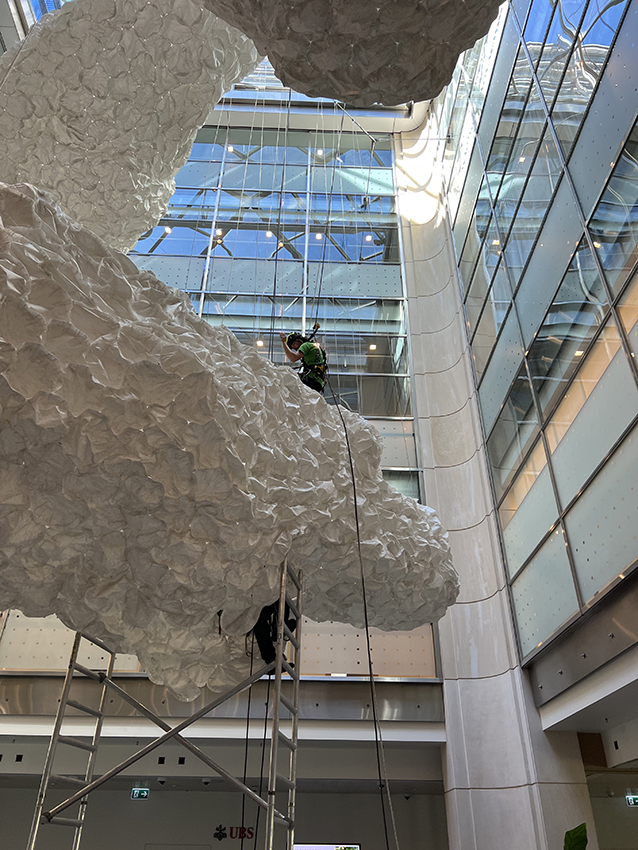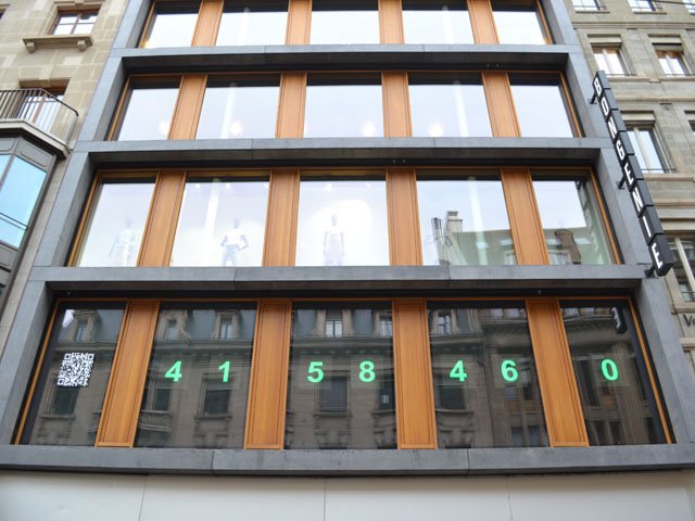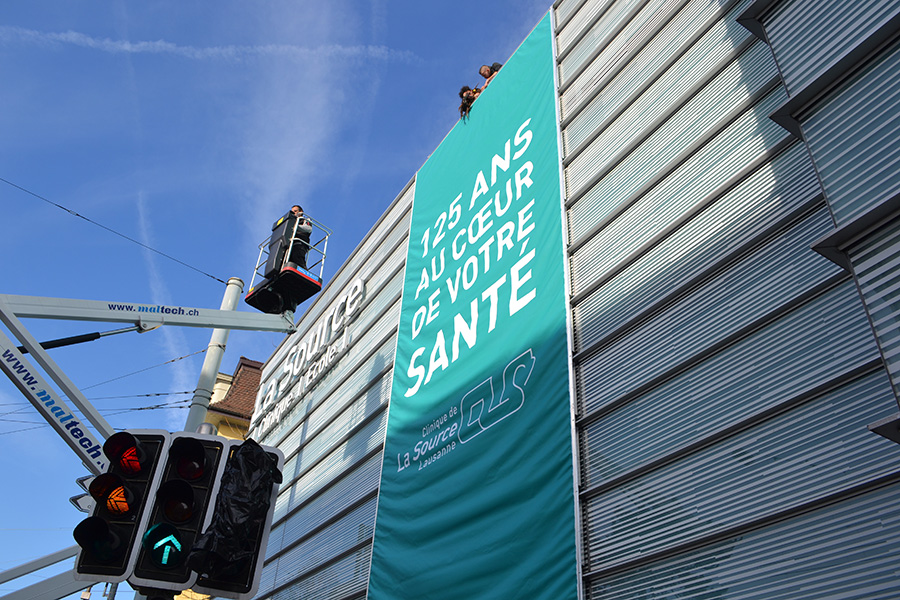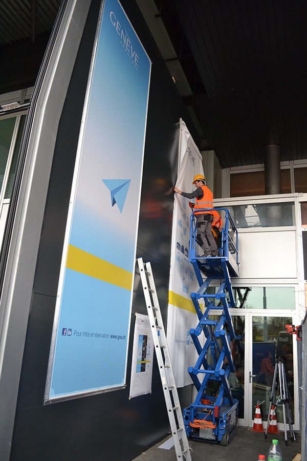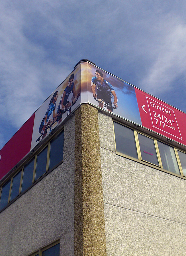 Giant visual on glass facade: Study and creation of the fixing system, Printing + Shaping of the Visual and installation
