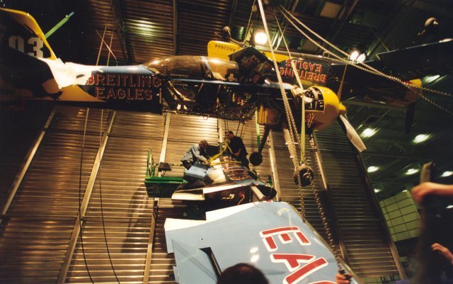Suspensions of two Sukhoi Su-26 in aerobatic position